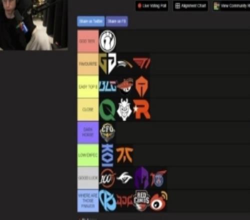 体育资讯10月10日称 caedrel列出了自己对于本次S15的世界赛战队评级;
