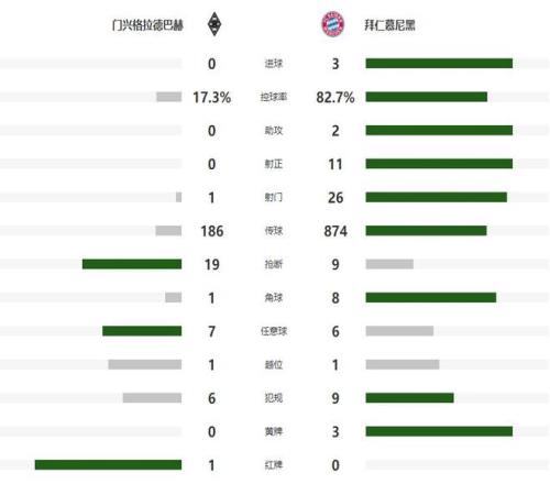 多一人作战的拜仁,随后在门兴大禁区附近开始了破密集防守的演练,第30分钟迪亚斯禁区内头球摆渡,中路跟进的杰克逊没有准备好,浪费了迪亚斯的妙传,半场比赛结束之前,杀到前场的比朔夫完成了一脚远射,但被主队的门将神勇扑出了底线,两支球队也带着0-0的比分,结束了上半场的争夺。