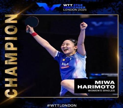 女单决赛,张本美和4-3(5-11、6-11、11-8、11-4、11-6、6-11、11-9)战胜队友早田希娜夺冠。