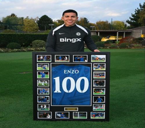 当地时间10月28日,切尔西官方晒照,俱乐部向这五名球员赠送了百场里程碑纪念礼物,相框主体为一件印有球员名字和“100”字样的球衣,此外还有球员们切尔西生涯的高光时刻图集。