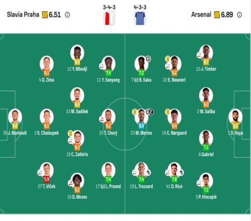 阿森纳首发:1-拉亚、2-萨利巴、5-因卡皮耶(71’49-斯凯利)、6-加布里埃尔、12-廷伯(71’4-怀特)、16-诺尔高、23-梅里诺、41-赖斯(81’71-阿努斯)、7-萨卡、19-特罗萨德(71’56-道曼)、22-恩瓦内里(65’10-埃泽)。
