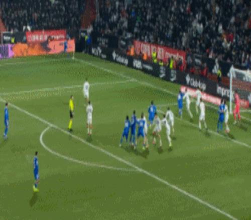下半场补时第1分钟,皇马右侧角球机会,贡萨洛-加西亚跃起头球得分,皇马2-2扳平!
