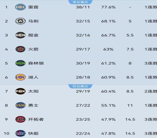 上一篇: 西部排名更新!森林狼爆冷雷霆反超湖人升第五太阳连胜稳压勇士