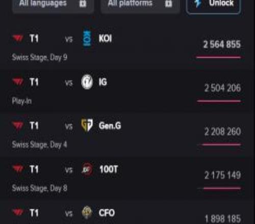 打破纪录!T1对战GEN前三局海外峰值突破269万,来到275万